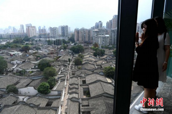 7月8日,從高處鳥瞰有“中國明清建筑博物館”之稱的福州三坊七巷,蔚為壯觀。位于福州中心城區(qū)的三坊七巷擁有38公頃的完整保護(hù)范圍,為國內(nèi)現(xiàn)存規(guī)模較大、保護(hù)較為完整的歷史文化街區(qū),是全國為數(shù)不多的古建筑遺存之一,有“中國城市里坊制度活化石”和“中國明清建筑博物館”的美稱。