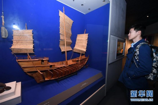 3月1日,參觀者在泉州海外交通史博物館觀賞展出的泉州灣宋代海船剖面模型。泉州自古就是海上絲綢之路的重鎮(zhèn),擁有眾多珍貴的相關(guān)文物古跡。泉州海外交通史博物館(海交館)展出的反映古代海外交通、海上絲綢之路及由此引發(fā)的經(jīng)濟(jì)、文化交流的海外交通史文物,生動(dòng)再現(xiàn)了中國古代悠久輝煌的海洋文化。新華社記者 林善傳 攝