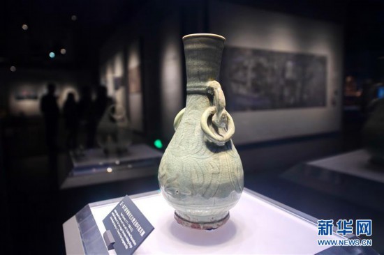 這是泉州海外交通史博物館展出的元代東門窯青釉劃花紋夔龍銜環(huán)雙耳瓶(3月1日攝)。泉州自古就是海上絲綢之路的重鎮(zhèn),擁有眾多珍貴的相關(guān)文物古跡。泉州海外交通史博物館(海交館)展出的反映古代海外交通、海上絲綢之路及由此引發(fā)的經(jīng)濟(jì)、文化交流的海外交通史文物,生動(dòng)再現(xiàn)了中國古代悠久輝煌的海洋文化。新華社記者 林善傳 攝