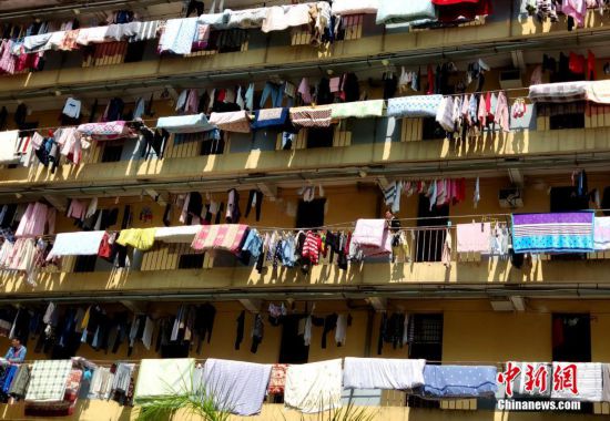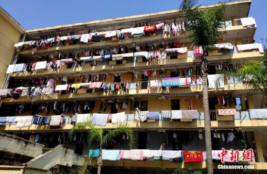 3月12日,福州市暫別陰雨天氣,迎來晴天。福州某高校的一棟宿舍樓外,學(xué)生晾曬的被子和衣物“鋪天蓋地”,成為一道別樣的風(fēng)景。中新社記者呂明攝