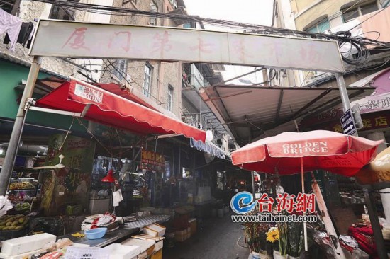 第七市場還在營業(yè),就在距離八市不遠(yuǎn)處的大同路與思明東路之間,仍是許多老廈門買菜的好去處,在“思東站”下車后便可以看見第七菜市場的牌子!霸缒,老廈門人都習(xí)慣去第一市場和第七市場買菜,去八市買海鮮!惫险f。