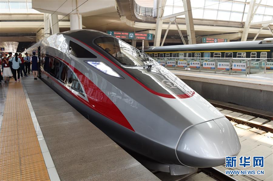 6月26日,“復(fù)興號”G123次列車駛出北京南站。 當(dāng)日,中國標(biāo)準(zhǔn)動車組“復(fù)興號”在京滬高鐵兩端的北京南站和上海虹橋站雙向首發(fā),分別擔(dān)當(dāng)G123次和G124次高速列車!皬(fù)興號”是由中國鐵路總公司牽頭組織研制、具有完全自主知識產(chǎn)權(quán)、達(dá)到世界先進(jìn)水平的中國標(biāo)準(zhǔn)動車組。 新華社記者邢廣利攝