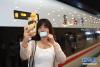6月26日,在北京南站,一位乘坐“復(fù)興號”G123次列車的乘客在車外與列車合影。 當(dāng)日,中國標(biāo)準(zhǔn)動車組“復(fù)興號”在京滬高鐵兩端的北京南站和上海虹橋站雙向首發(fā),分別擔(dān)當(dāng)G123次和G124次高速列車!皬(fù)興號”是由中國鐵路總公司牽頭組織研制、具有完全自主知識產(chǎn)權(quán)、達(dá)到世界先進(jìn)水平的中國標(biāo)準(zhǔn)動車組。 新華社記者鞠煥宗攝 -