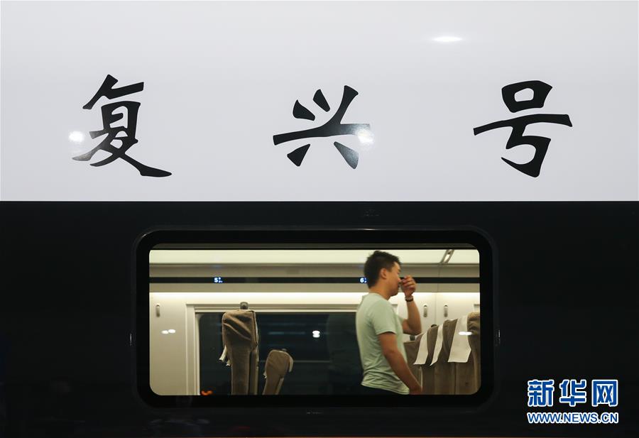 6月26日,在北京南站,“復(fù)興號”G123次列車等候出發(fā)。 當(dāng)日,中國標(biāo)準(zhǔn)動車組“復(fù)興號”在京滬高鐵兩端的北京南站和上海虹橋站雙向首發(fā),分別擔(dān)當(dāng)G123次和G124次高速列車!皬(fù)興號”是由中國鐵路總公司牽頭組織研制、具有完全自主知識產(chǎn)權(quán)、達(dá)到世界先進(jìn)水平的中國標(biāo)準(zhǔn)動車組。 新華社記者鞠煥宗攝 -
