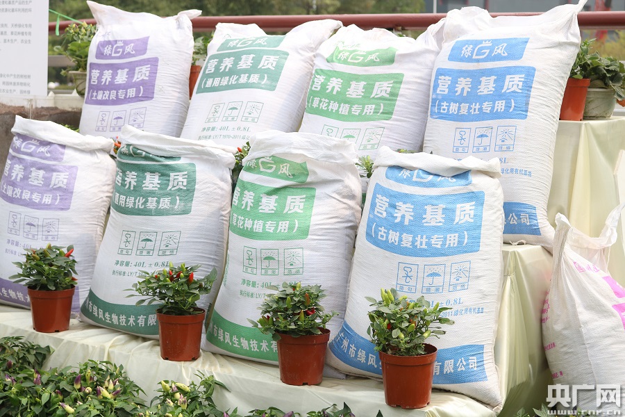 觀摩現(xiàn)場展出的有機(jī)肥。(央廣網(wǎng)記者 夏燕 攝)
