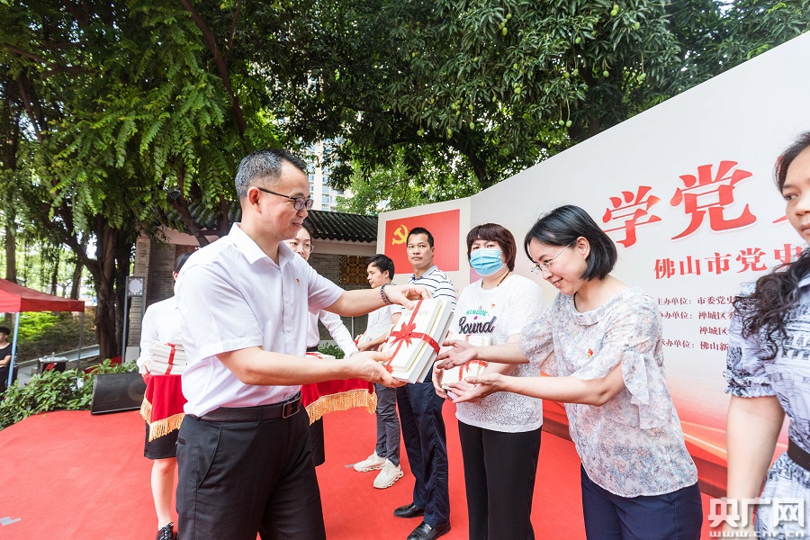 贈送黨史學(xué)習(xí)教育書籍。(央廣網(wǎng)發(fā) 王偉楠攝)