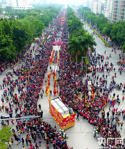 央廣網(wǎng)肇慶2月11日消息(記者何偉奇 肇慶臺(tái)李天文 黃伯光)2月11日,民間藝術(shù)巡演、“炮仗攻獅子”和煙花文藝晚會(huì)等元宵系列活動(dòng)在廣東省肇慶市德慶縣城舉行,吸引了來自西江流域和珠三角近30萬群眾和游客歡聚一起大鬧元宵慶豐年。