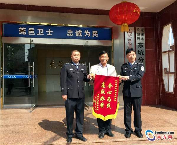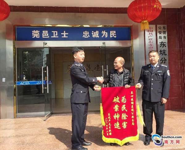 價值約185萬元的金錢龜、石金錢龜失而復(fù)得,事主盧先生甚為感概。他專門制作了錦旗,與東莞市龜業(yè)研究會有關(guān)負責人前來東坑公安分局道謝。盧先生緊緊握住辦案民警的手,顯得很激動。