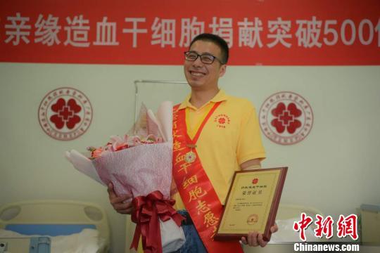 3月13日,來自廣東的31歲志愿捐獻者鄧松生成為中華骨髓庫廣東省分庫的第500例造血干細胞捐獻者