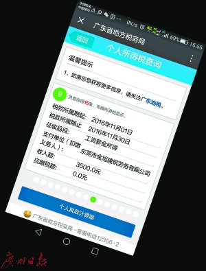 2015年畢業(yè)于東職學(xué)院的小陳稱,她的個人信息被東莞市金旭建筑勞務(wù)有限公司利用。今年3月28日晚,她在朋友圈看到一篇《震驚!多名東職畢業(yè)生資料泄露,被某公司拿去報稅?》的文章后,隨手查詢了自己的個人所得稅情況。她驚訝地發(fā)現(xiàn),自己的收入額明顯高于實際情況,支付單位是“金旭建筑勞務(wù)有限公司”。從去年11月開始,該公司以她的名義去東莞市地稅局南城分局申報個人所得稅,每個月申報額度為3500元。