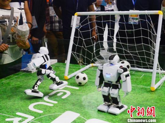 廠家展出足球機器人 徐曉美 攝