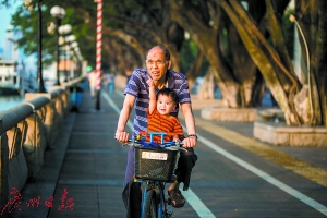 在濱江路活動的街坊,已經(jīng)穿短袖衫出動。廣州日報全媒體記者陳憂子攝
