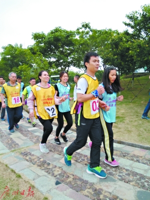 廣州日?qǐng)?bào)訊 奔向彩虹,跑出希望!昨天上午,45名視力殘疾人走出家門,來到江門新會(huì)區(qū)圭峰山綠護(hù)屏景區(qū),參加“彩虹微跑”殘健共跑活動(dòng)。江門首個(gè)盲人微型馬拉松跑步團(tuán)(簡(jiǎn)稱“微跑團(tuán)”)也在活動(dòng)現(xiàn)場(chǎng)宣布成立。