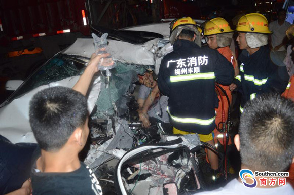 南方網(wǎng)訊 5月4日凌晨3時(shí)許,梅州市豐順縣消防大隊(duì)接到群眾報(bào)警稱(chēng),位于豐順縣湯坑鎮(zhèn)環(huán)城路豐順大橋附近一輛大貨車(chē)與一輛小車(chē)相撞,并有人員被困,情況萬(wàn)分緊急。接到報(bào)警后,豐順消防大隊(duì)立即出動(dòng)2輛消防車(chē)火速趕赴現(xiàn)場(chǎng)進(jìn)行救援。