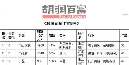 再來看看網(wǎng)易的丁磊,根據(jù)去年10月公布的《2016胡潤IT富豪榜》中,丁磊的居住地顯示為浙江杭州,那他算不上是廣州富豪啦。