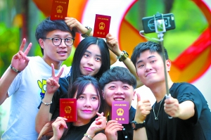 海珠區(qū)婚姻登記處從今年5月25日起面向全市戶籍人口辦理婚姻登記,而從昨天開始就接受跨區(qū)預(yù)約。昨日由于預(yù)約量“火爆”,海珠區(qū)婚姻登記處也比平時(shí)提早了一個(gè)小時(shí)開始辦理業(yè)務(wù)。海珠區(qū)居民步先生說,他和太太早上6時(shí)就趕到登記處門口了,那時(shí)前面就已經(jīng)有十多對(duì)情侶在等候。海珠區(qū)婚姻登記處有關(guān)負(fù)責(zé)人透露,當(dāng)天預(yù)約登記結(jié)婚的新人約94對(duì),是平時(shí)的兩倍多。