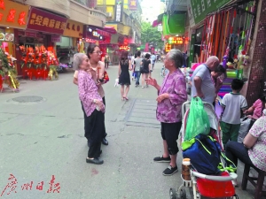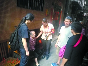 冼婆婆每說(shuō)到一個(gè)地方,他們?nèi)齻(gè)人就一路陪她著來(lái)到那個(gè)地方,希望她回憶起更多細(xì)節(jié),就這樣,這群臨時(shí)組成的“孫子”“孫女”陪著冼婆婆一條又一條街巷、一個(gè)又一個(gè)小區(qū)尋找回家的路,上社、棠下、棠東……當(dāng)他們走進(jìn)上社牌坊。很幸運(yùn),他們遇見了冼婆婆的街坊,跟街坊說(shuō)清來(lái)由后,街坊很熱情地協(xié)助打電話聯(lián)系冼婆婆的家屬。冼婆婆的兒子潘先生和孫女聞?dòng)嵹s來(lái),冼婆婆終于與家人團(tuán)聚了。