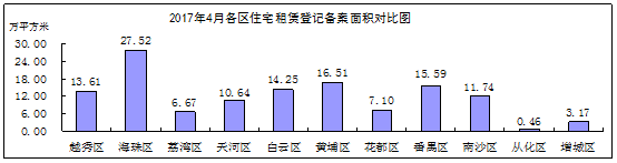 如陽光家緣數(shù)據(jù)顯示,2017年4月,廣州市(包括全市11區(qū))新建商品住宅網(wǎng)上簽約面積132.33萬平方米,網(wǎng)上簽約均價16664元/平方米;存量(二手房)住宅交易登記面積119.72萬平方米;這部分?jǐn)?shù)據(jù)對比去年12月份,均有小幅下降。而4月的房屋租賃登記備案面積為481.88萬平方米,住宅租賃登記備案面積為127.26萬平方米,相對稍有攀高。其中月租金每平方米均價2017年4月與2016年12月分別是住宅24元和29元、辦公31元和30元、商業(yè)60元和61元、工業(yè)倉儲40元和28元、其他40元和60元?偟膩碚f,2017年4月的月租金波動不大,住宅租金和其他用途租金有所下降。