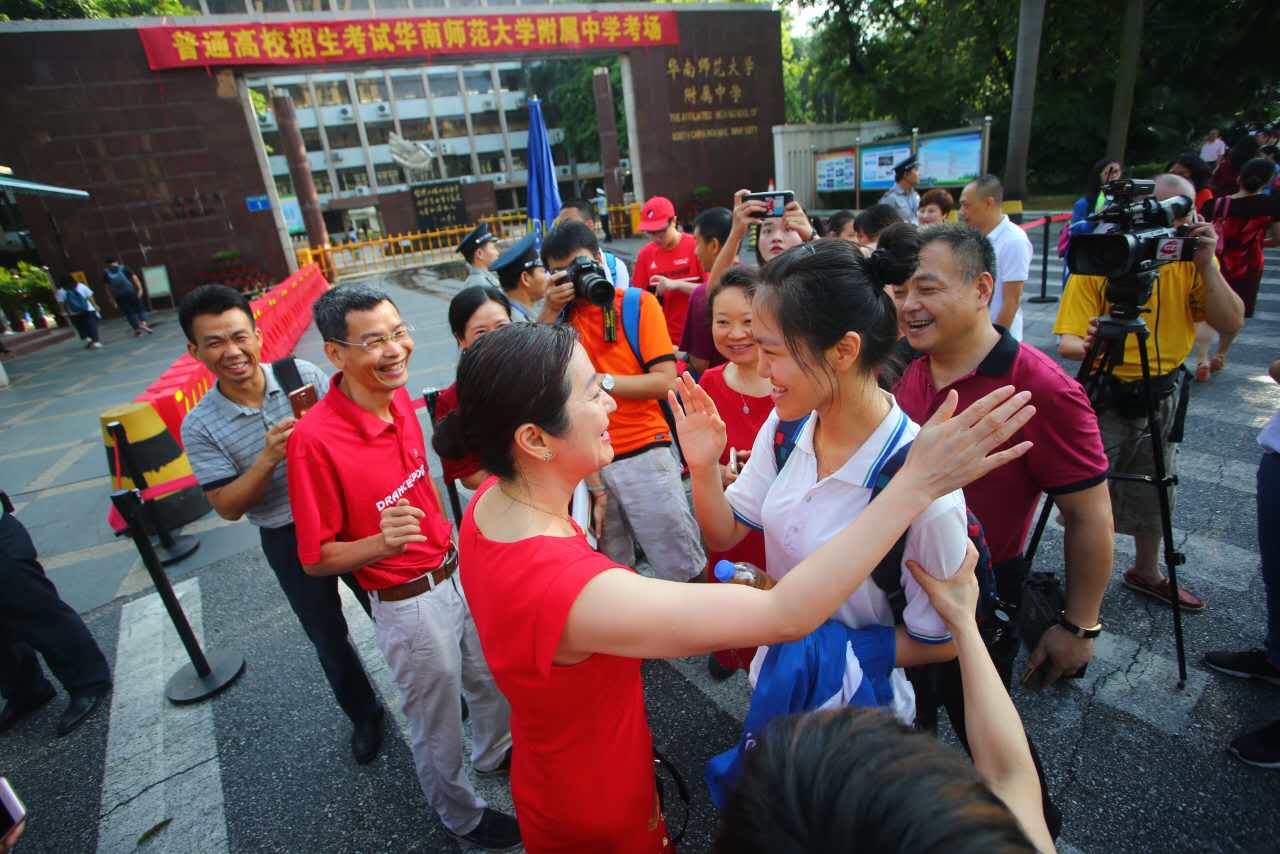 早上7時(shí)許,執(zhí)信中學(xué)大門(mén)還未打開(kāi),考生們已到達(dá)校門(mén)外做準(zhǔn)備,互相鼓勵(lì)。不少家長(zhǎng)也按執(zhí)信傳統(tǒng)穿上了紅色上衣為考生鼓勁。廣報(bào)記者蘇俊杰攝(文/廣報(bào)記者申卉 圖/廣報(bào)記者蘇俊杰)