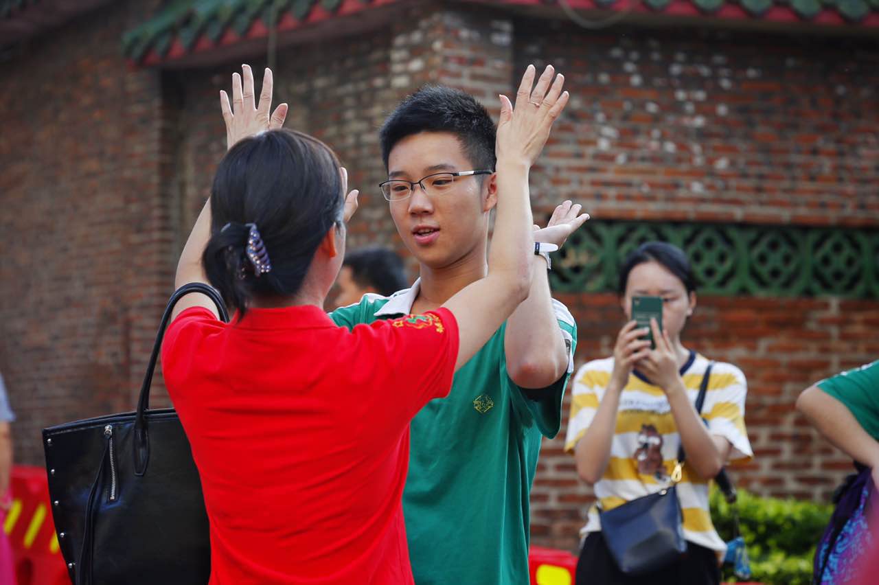 兩位保送的華附學(xué)生來(lái)到考場(chǎng)為同學(xué)加油。