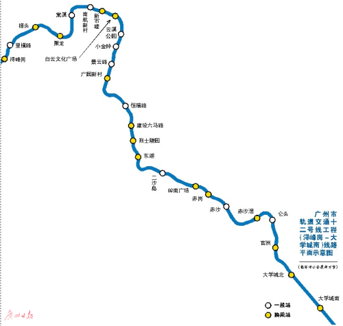 地鐵12號線定位為廣州城市軌道X形對角線之一,呈西北-東南走向,經(jīng)過生物島進入大學城。據(jù)公開消息,12號線終點站至今已發(fā)生了三次變化。