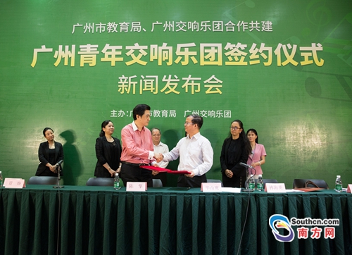 2012年5月,為提高廣州市青少年的藝術(shù)素養(yǎng),推進(jìn)學(xué)校藝術(shù)教育普及工作和促進(jìn)學(xué)校樂隊建設(shè),廣州市教育局和廣州交響樂團(tuán)共同簽署了首個五年合作協(xié)議書,決定在廣州交響樂附屬青少年樂團(tuán)基礎(chǔ)上,合作共建廣州學(xué)生交響樂團(tuán)。在圓滿完成2012-2017年度第一個五年合作計劃的基礎(chǔ)上,為促進(jìn)廣州市學(xué)校藝術(shù)教育普及工作再上新臺階,雙方均同意進(jìn)一步深化合作。同時,為適應(yīng)國際化、專業(yè)化的發(fā)展需要,雙方同意將合作共建的“廣州學(xué)生交響樂團(tuán)”更名為“廣州青年交響樂團(tuán)”(以下簡稱“廣青交”)。7月19日,雙方共同簽署了新一輪合作協(xié)議。