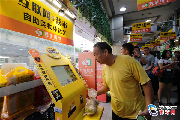 繼無(wú)人超市引發(fā)熱議后,廣州有連鎖超市也推出自助超市服務(wù),顧客只要將選購(gòu)好的商品,在自助收銀機(jī)刷一刷即可用手機(jī)埋單,最快5秒就可以“埋單走人”。