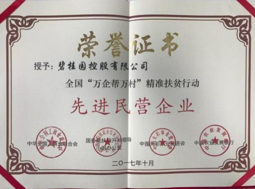 在第四個(gè)國(guó)家扶貧日到來(lái)之際,碧桂園被授予全國(guó)“萬(wàn)企幫萬(wàn)村”精準(zhǔn)扶貧行動(dòng)“先進(jìn)民營(yíng)企業(yè)”榮譽(yù)稱(chēng)號(hào)。近年,碧桂園及楊國(guó)強(qiáng)父女已經(jīng)榮膺中國(guó)消除貧困獎(jiǎng)(創(chuàng)新獎(jiǎng))、首屆全國(guó)脫貧攻堅(jiān)獎(jiǎng)以及七項(xiàng)中華慈善獎(jiǎng)等稱(chēng)號(hào),楊國(guó)強(qiáng)在2015年還以扶貧攻堅(jiān)典范身份受到國(guó)家主席習(xí)近平會(huì)見(jiàn)。