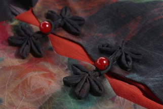 香云紗又名茛綢,是一種以植物汁水浸染桑蠶絲織物,經(jīng)日曬后制作而成的紗綢制品,2008年入選國(guó)家級(jí)非物質(zhì)文化遺產(chǎn)名錄。所用植物汁水為廣東特有的薯莨汁水。