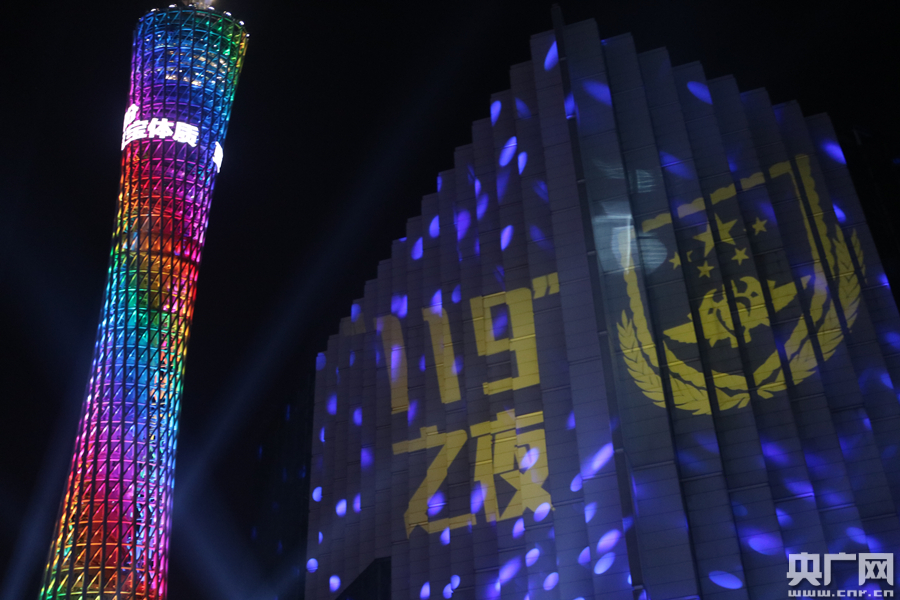 當晚,廣州塔、廣州國際媒體港、獵德大橋等主會場建筑,以及珠江北岸24棟建筑群、黃埔科學城中心廣場、廣州圓大廈等地標,通過絢爛的燈光和屏幕矩陣展開了主題為《關注消防、生命至上》的大型燈光宣傳活動。