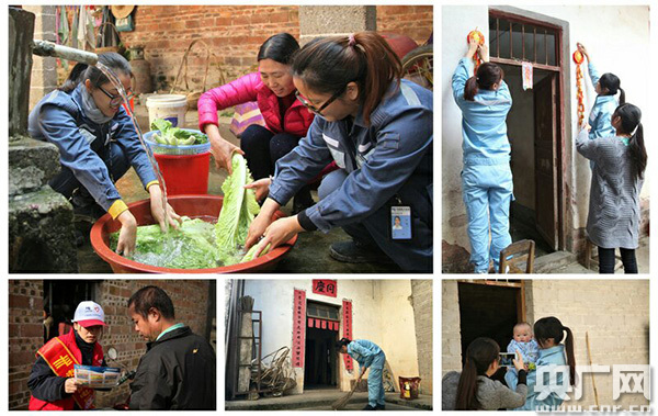 春節(jié)前,15人的志愿服務隊,再次來到了水秀村,將紅紅的燈籠掛上村路兩旁,來到小霞家,幫他們把家里里里外外打掃干凈,把吉祥的鞭炮串兒掛上門口;他們在村里宣傳安全用電知識,慰問村里的貧困戶,為他們檢查線路,確保村民們過一個溫暖的春節(jié)。