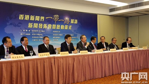 央廣網(wǎng)香港2月7日消息(記者周偉琪)2月7日下午,香港新聞界一帶一路采訪活動新聞發(fā)布會暨啟動儀式在香港銅鑼灣世貿(mào)中心隆重召開。是次采訪活動由香港新聞工作者聯(lián)會、香港報業(yè)公會主辦,香港中華總商會、香港僑界社團(tuán)總會、香港廣東社團(tuán)總會、香港福建社團(tuán)總會、國際潮團(tuán)總會、絲綢之路經(jīng)濟(jì)發(fā)展研究中心、中國華信(格魯吉亞)有限公司、新華集團(tuán)、長飛光纖光纜有限公司聯(lián)合主辦。全國政協(xié)常委、香港江蘇社團(tuán)總會會長唐英年先生,全國政協(xié)常委、香港廣東社團(tuán)總會主席陳永棋先生,全國政協(xié)常委、香港僑界社團(tuán)聯(lián)會會長余國春先生,全國政協(xié)教科文衛(wèi)體副主任、香港中華總商會會長、新華集團(tuán)主席蔡冠深先生,全國政協(xié)教科文衛(wèi)體副主任、福建社團(tuán)聯(lián)會主席吳良好先生,中聯(lián)辦宣文部副部長李海堂先生,政府新聞處助理處長庾志偉先生,全國政協(xié)委員、香港新聞工作者聯(lián)會主席香港大公文匯傳媒集團(tuán)董事長姜在忠先生,香港新聞工作者聯(lián)會會長張國良先生,國際潮團(tuán)總會秘書長張成雄先生,絲綢之路經(jīng)濟(jì)發(fā)展研究中心理事長陳立基先生。