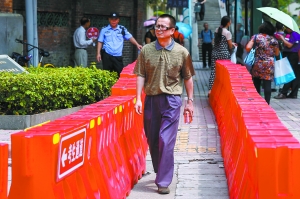 56歲的老劉是今年執(zhí)信中學(xué)考點(diǎn)年紀(jì)最大的考生。