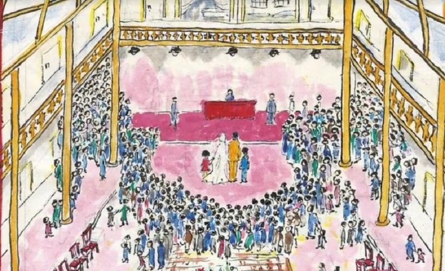 但其實最初,高春霞并不了解兩位老人的愛情故事。直到老人的五位子女找到她,帶著《平如美棠》那本書,她無意中翻時才知道這是非常平凡而相親相愛的一家。根據(jù)書中饒平如畫的一張夫婦倆當年在大禮堂結(jié)婚的圖片,高春霞萌生了“用還原兩位逝者婚禮的形式”來舉行合靈儀式的想法。