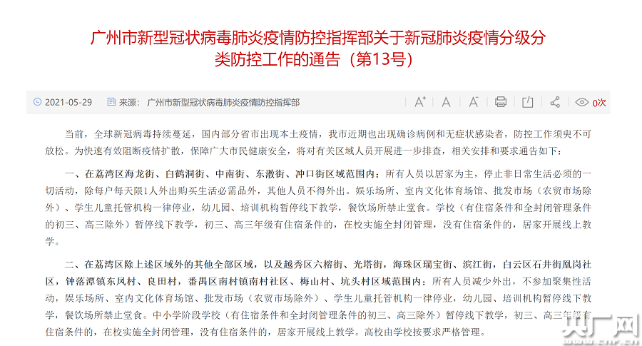 廣州市新冠疫情防控指揮部發(fā)布最新消息