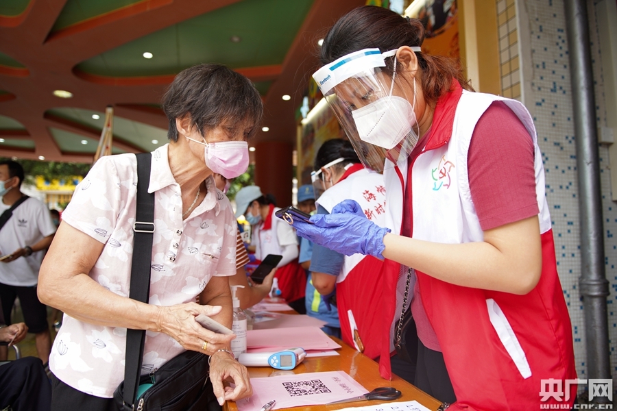志愿者引導(dǎo)市民準(zhǔn)備預(yù)約信息。(央廣網(wǎng)記者 官文清攝)