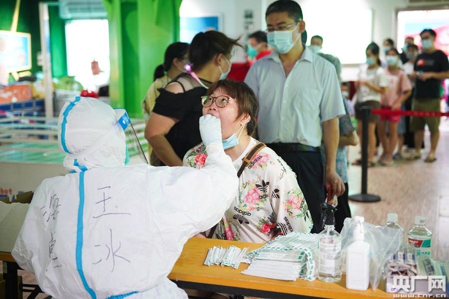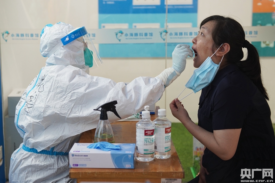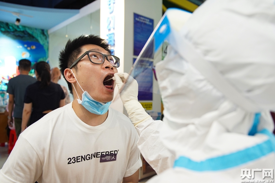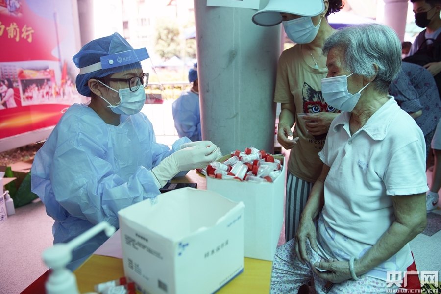 醫(yī)護(hù)人員正在對(duì)市民進(jìn)行核酸采樣。(央廣網(wǎng)記者 官文清攝)