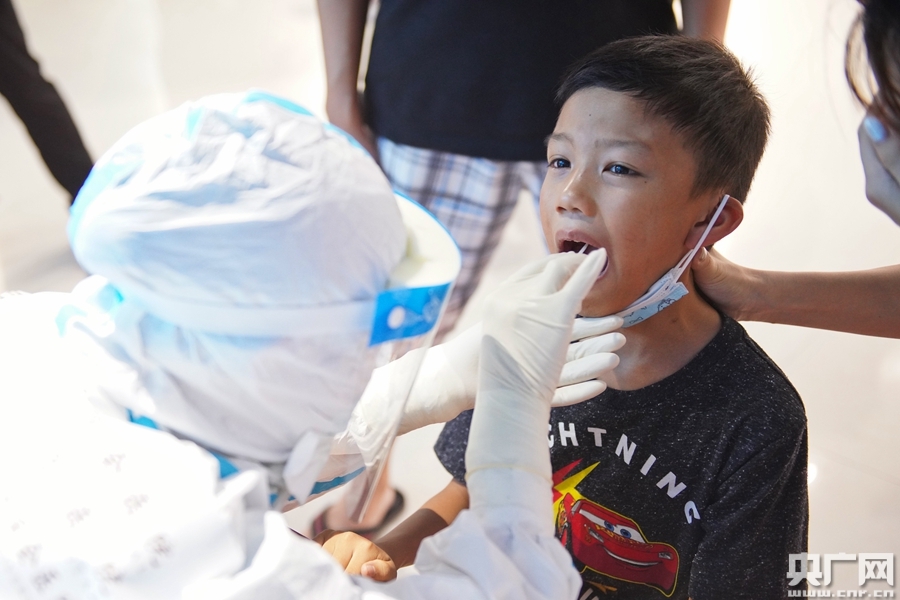 醫(yī)護(hù)人員正在對(duì)小朋友進(jìn)行核酸采樣。(央廣網(wǎng)記者 官文清攝)