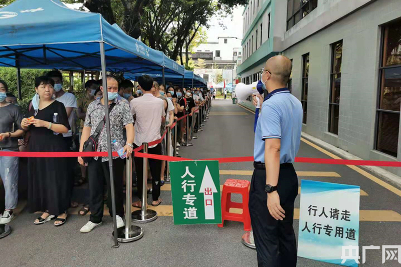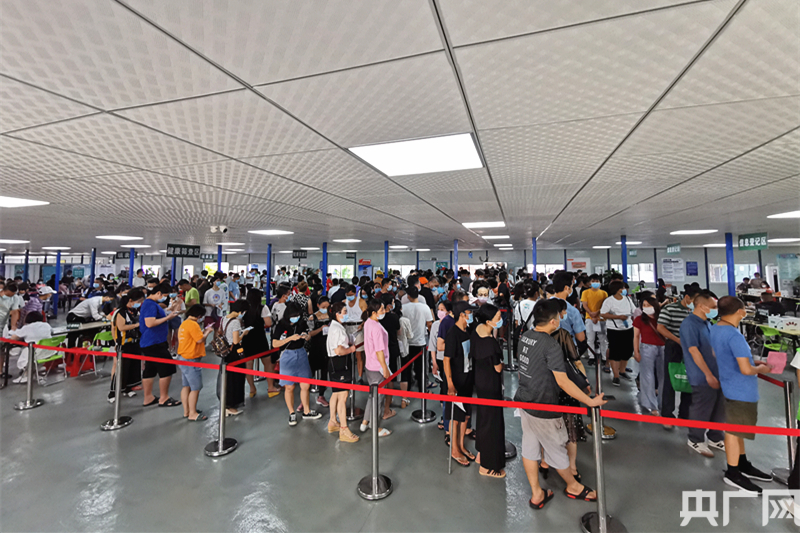 市民正在廣一接種點(diǎn)排隊(duì)接種疫苗。(央廣網(wǎng)發(fā))