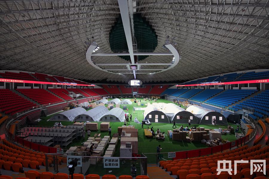 首個(gè)“獵鷹號(hào)”氣膜方艙實(shí)驗(yàn)室在廣州體育館建成并投入使用。(央廣網(wǎng)記者 官文清攝)