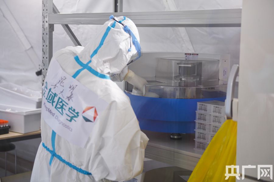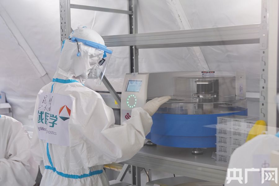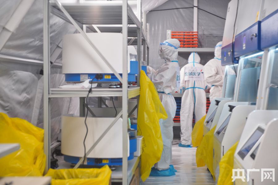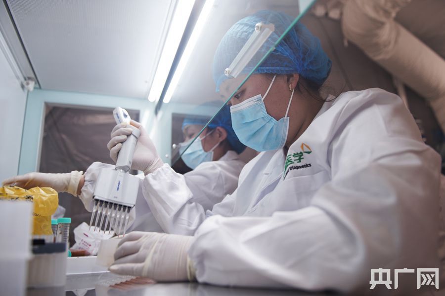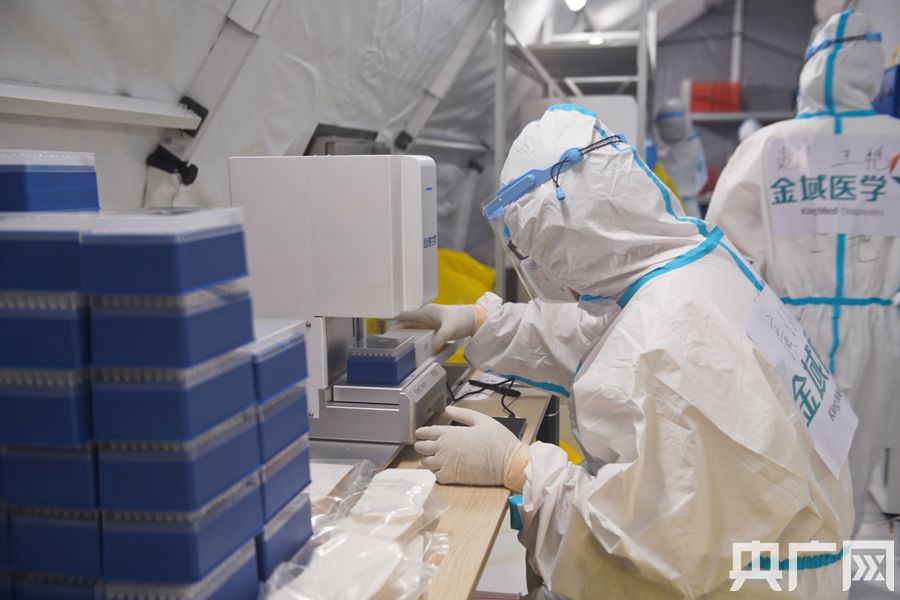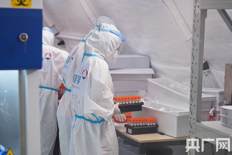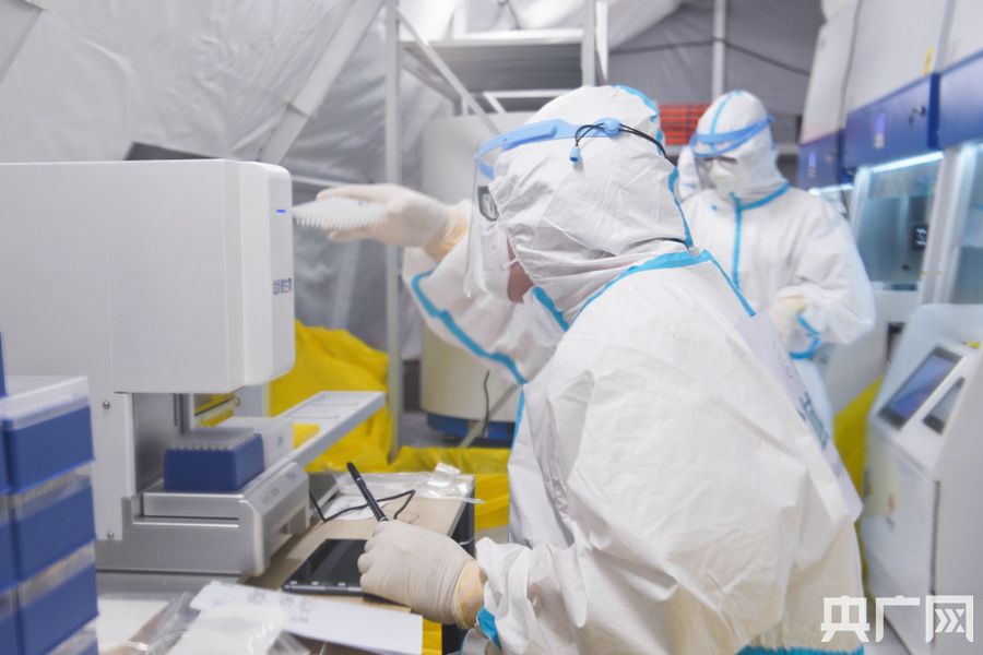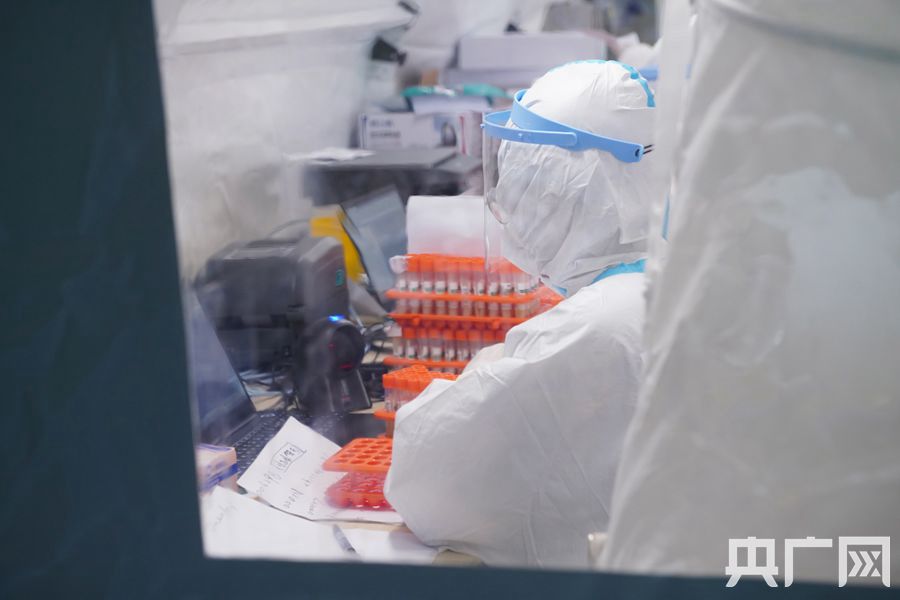 醫(yī)護(hù)人員正在檢測(cè)樣品。(央廣網(wǎng)記者 官文清攝)