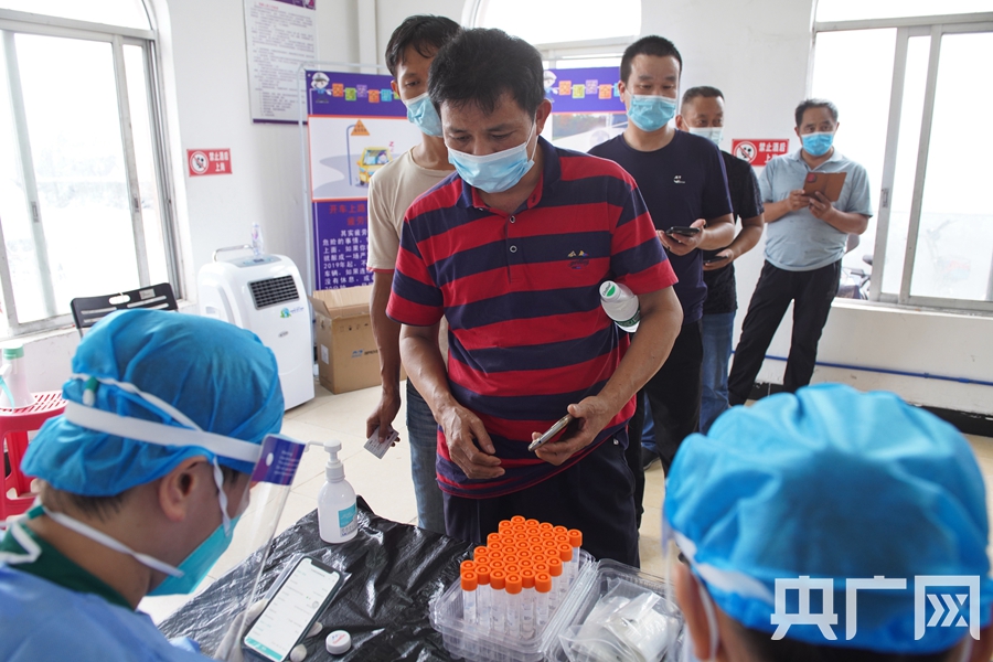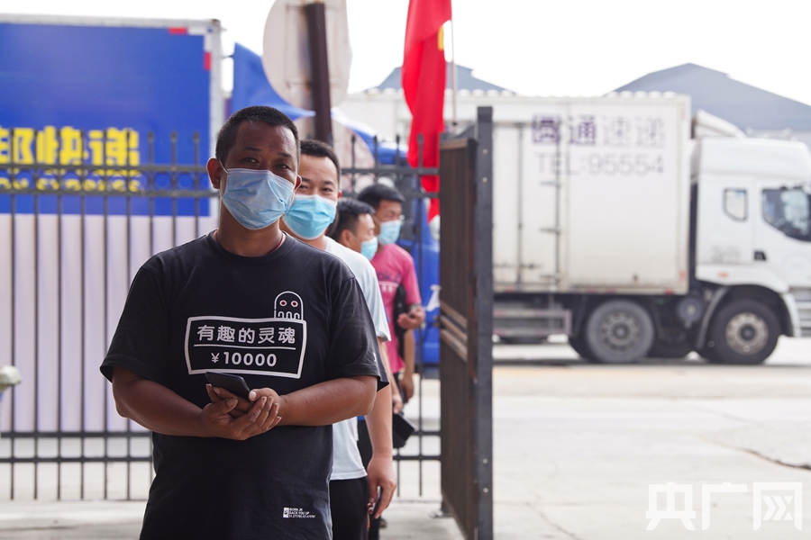 2日下午,記者來到了廣東圓通快遞有限公司服務(wù)點,雖然已是下午4時許,但依然有數(shù)十名司機在服務(wù)點外排隊等待,每兩名司機之間均保持一米距離,有序等候核酸檢測采樣。