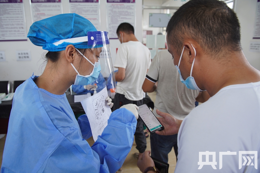 醫(yī)護人員正在登記司機信息。(央廣網(wǎng)記者 官文清攝)