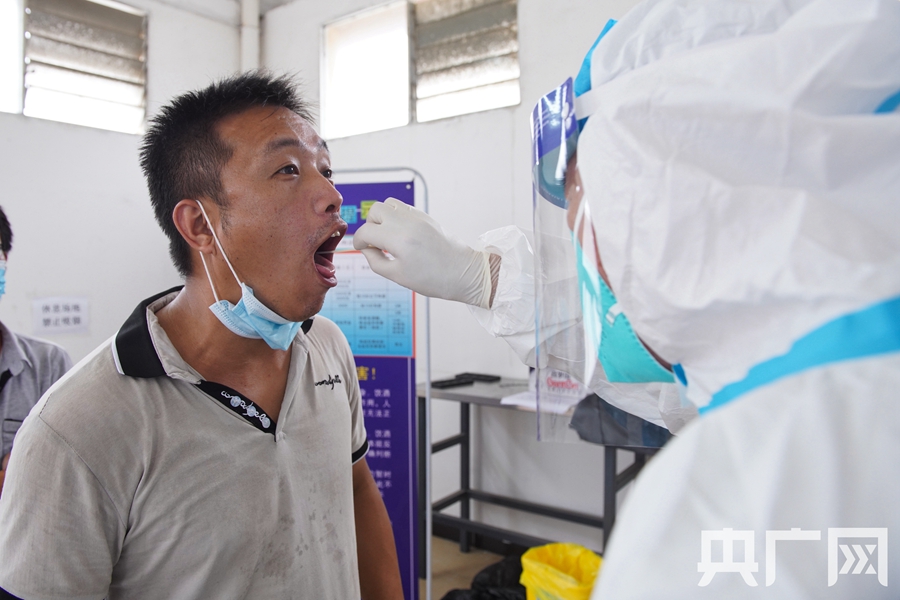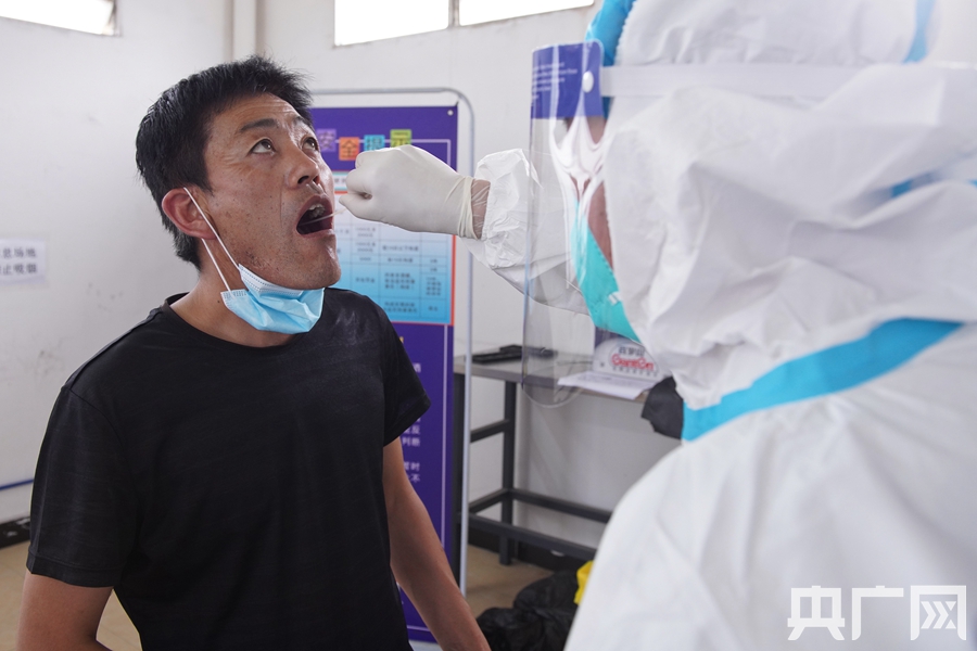醫(yī)護人員正在為司機進行核酸檢測。(央廣網(wǎng)記者 官文清攝)