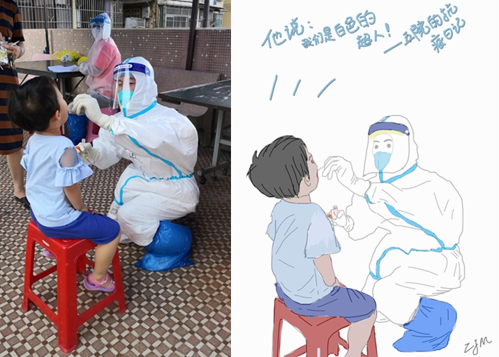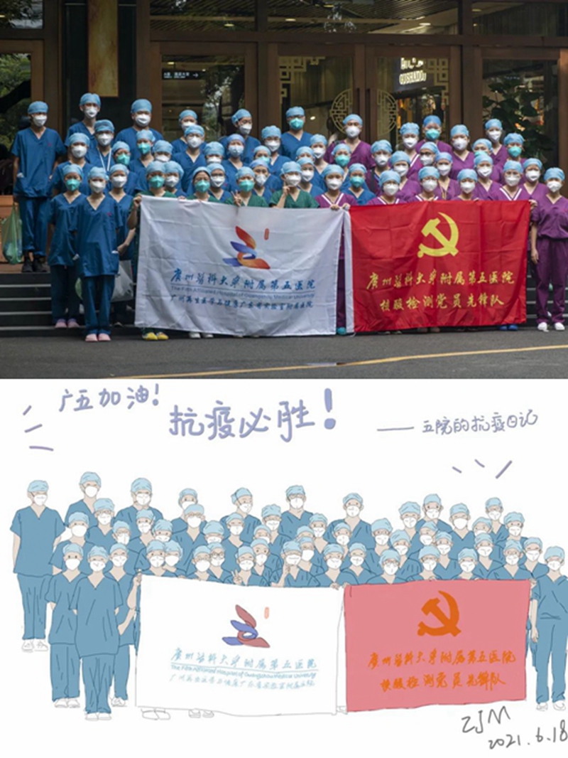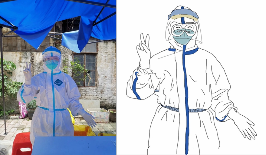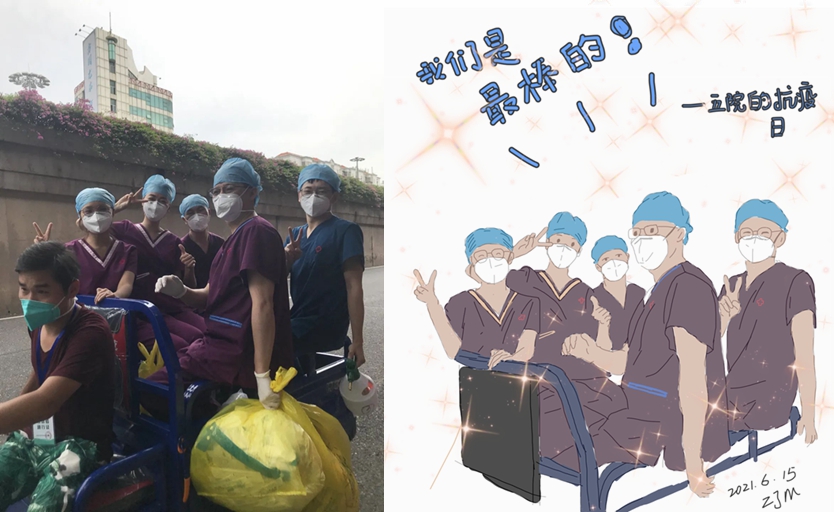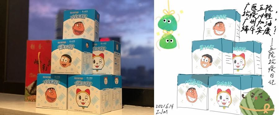 在大家奮戰(zhàn)一線的同時,攻堅隊隊員、醫(yī)學(xué)影像科張佳敏,利用短暫的休息時間化身“靈魂”畫手,通過一張張可愛的漫畫日記,記錄了廣醫(yī)五院支援醫(yī)療隊工作的點點滴滴。