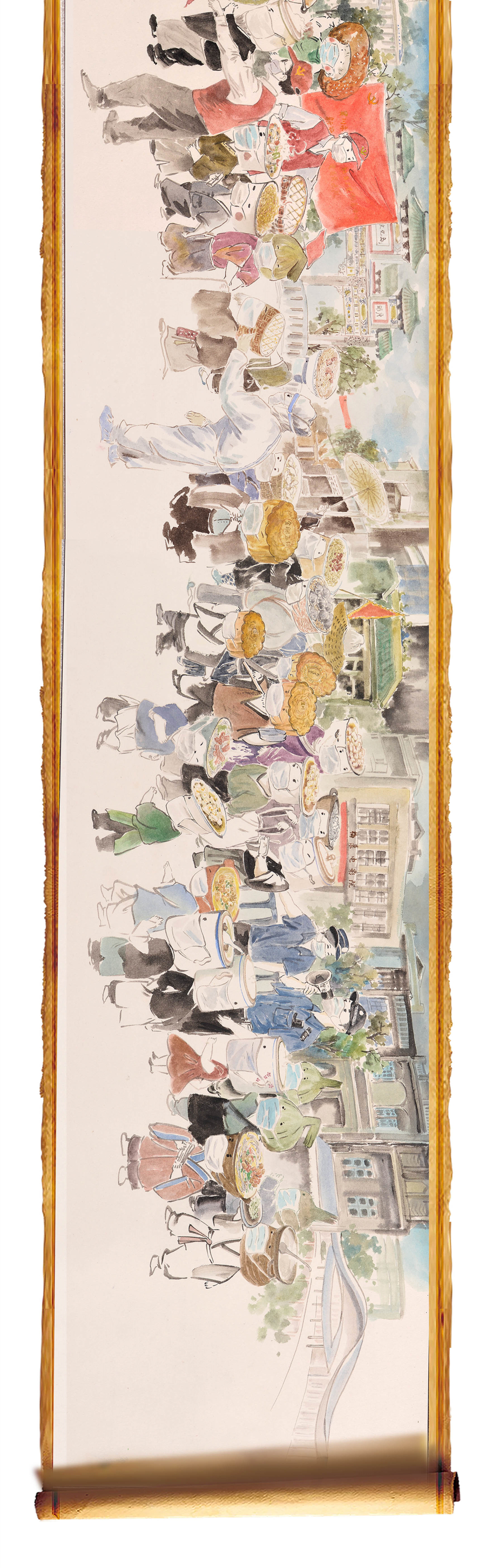 “吳川卷寄托的是我對家鄉(xiāng)的思念,所以在構(gòu)圖上也會更直白一些,就是用長卷的形式,把大家排隊(duì)做核酸的場景表現(xiàn)出來。”陳志杰解釋說。