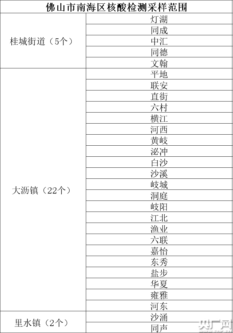 佛山市南海區(qū)核酸檢測采樣范圍(央廣網(wǎng)記者 夏燕 制表)