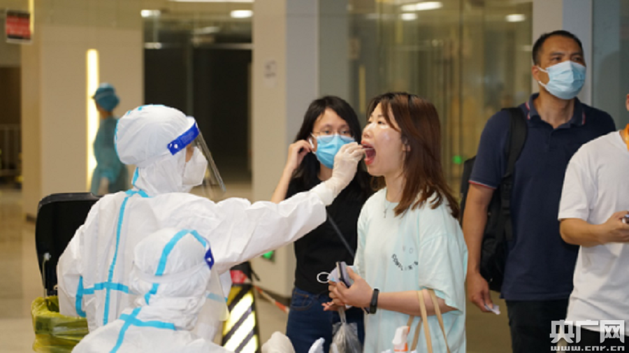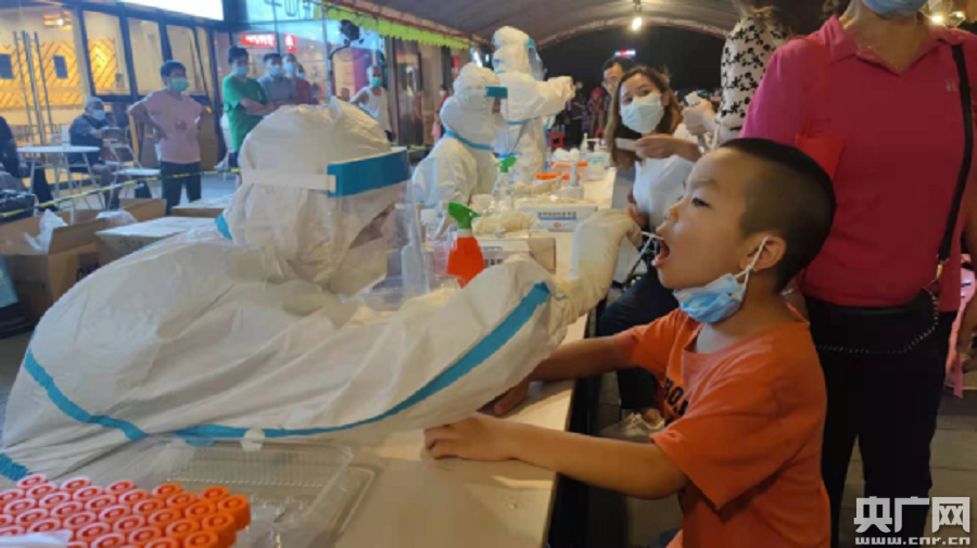 桂城富力金融中心核酸檢測采樣現(xiàn)場(央廣網(wǎng)發(fā) 陳仲華攝)