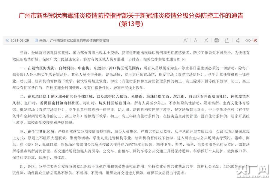 廣州市新冠疫情防控指揮部發(fā)布分級分類防控通告