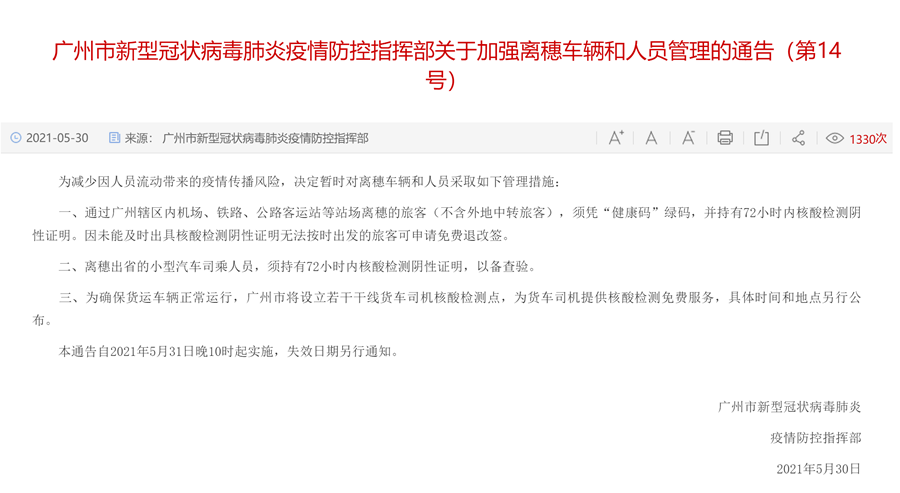 廣州市教育局表示,廣州市各區(qū)將統(tǒng)籌做好高三師生員工核酸檢測,分別在5月31日和6月3日前完成2次核酸檢測,并建立快速檢測通道,確保在樣本送檢后6小時內(nèi)出具核酸檢測結(jié)果。